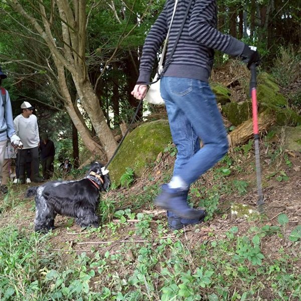 一列になって山へを歩き始めるととても長い列になりましたがみなリードをたるませた状態で飼い主さんと協力しあって前進していきます。