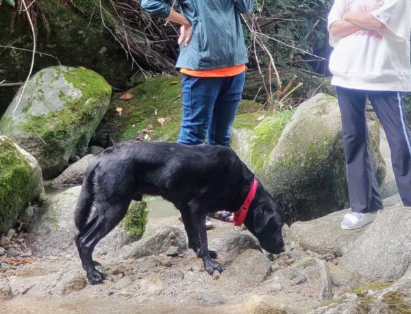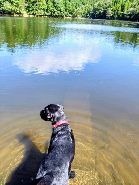 特別怯えた感じもないのですが、あえて飛び込ませる理由もなかったのでしばらく散策して過ごしました。くんくんと水から漂う匂いを嗅ぎながら初めての自然の中へのお出かけを満喫してるように見えました。