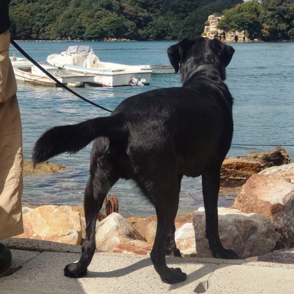 ジェイを連れて外出したことが全くなかったので、車での外出体験も練習をかねてしておこうと初日は佐世保のパールシーリゾートに出かけました。この日は夫婦で外出したこともありクレートを利用せずにバッグスペースにジェイを待機させる状態での移動を試しました。車での移動は訓練期間も含めて慣れているはずのジェイでしたが、左右に大きく揺れる山道には馴染みがないのと、今までなら車では人の足元に居場所を作っていたはずのジェイは足元の方に移動しようとするような行動も見られました。どんな行動にも経験や慣れという習慣性というのが影響されますから、ジェイの行動を見ていてそう感じたのです。クレートでの移動はできることを確認済みだったので、お休み期間をとおして、車ではバックスペースに待機させる練習を繰り返し、三回それを体験させるとやっと落ち着ていて過ごせるようになりました。大型犬なのですぐにクレートを準備できなくても車に待機することができるようになっている方が安心です。どのような練習も短い期間で繰り返し体験させる方が身に着きます。お休みが数日間続いたからこそできた移動の練習となりました。