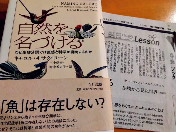 この本を読み始める少し前に、ある生徒さんから朝日新聞の切り抜きをいただきました。2025年8月7日発行の「明日へのレッスン」というコラムで、ヤーコブ・フォン・ユクスキュルの「生物からみた世界(岩波文庫発行」)について紹介したコラムでした。生物からみた世界はこのブログでもおすすめの本として紹介しています。ユクスキュル先生の提唱したとおり、まさにこの世界は固有の主観的な世界に他ならないのでしょう。